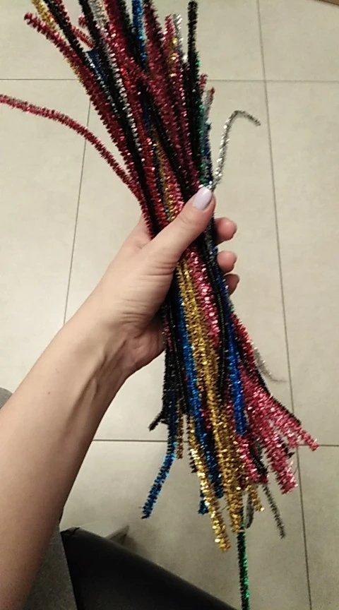 Именно то, что я хотел, более или менее 30 см в длину, лом и пластик, остерегайтесь его укладывания. Случайный цвет (5 или 7 каждого цвета) Мы использовали для Рождественского украшения, но он будет служить другим поводам.