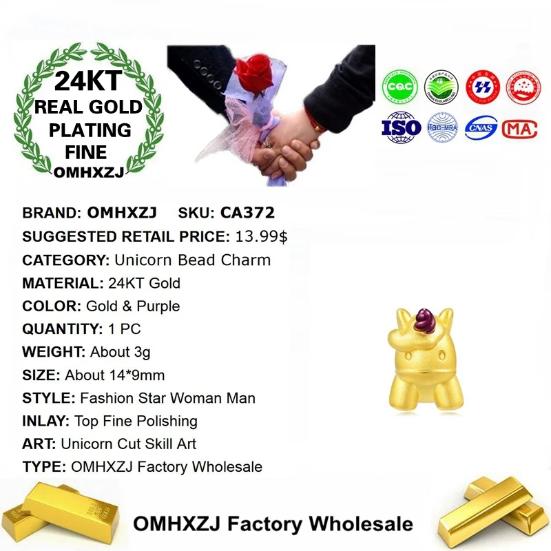 OMHXZJ оптовая продажа CA372 Европейская мода горячие прекрасные женщины мужчины вечерние рождения свадебный подарок Единорог бусины DIY 24KT золотой кулон очаровательные