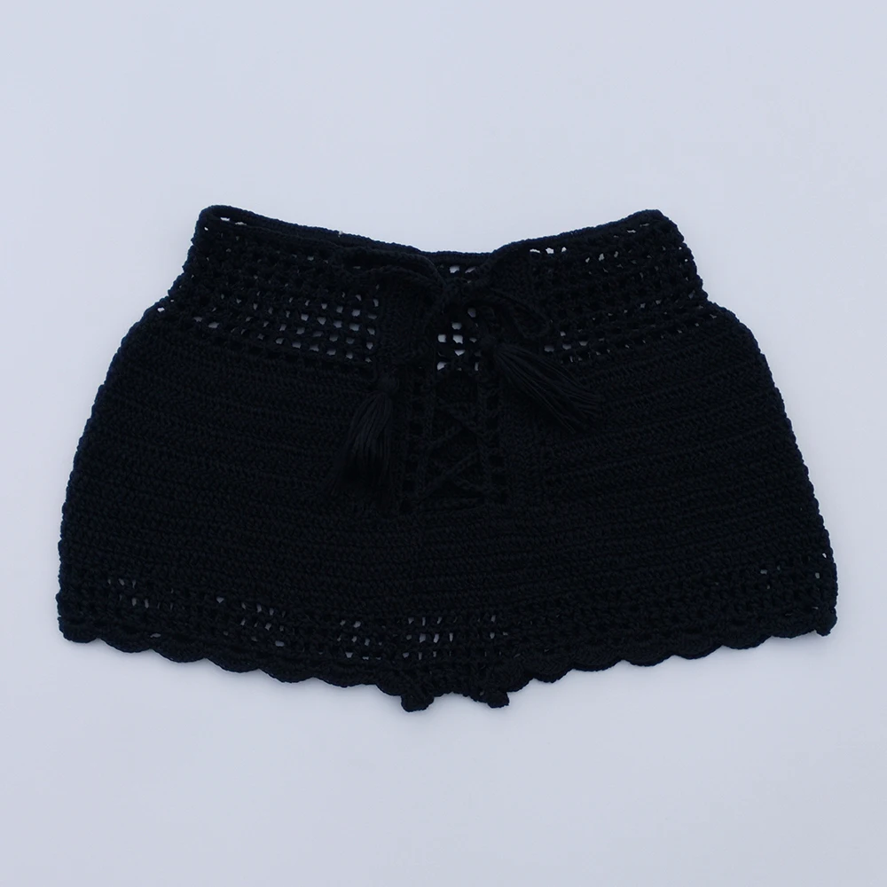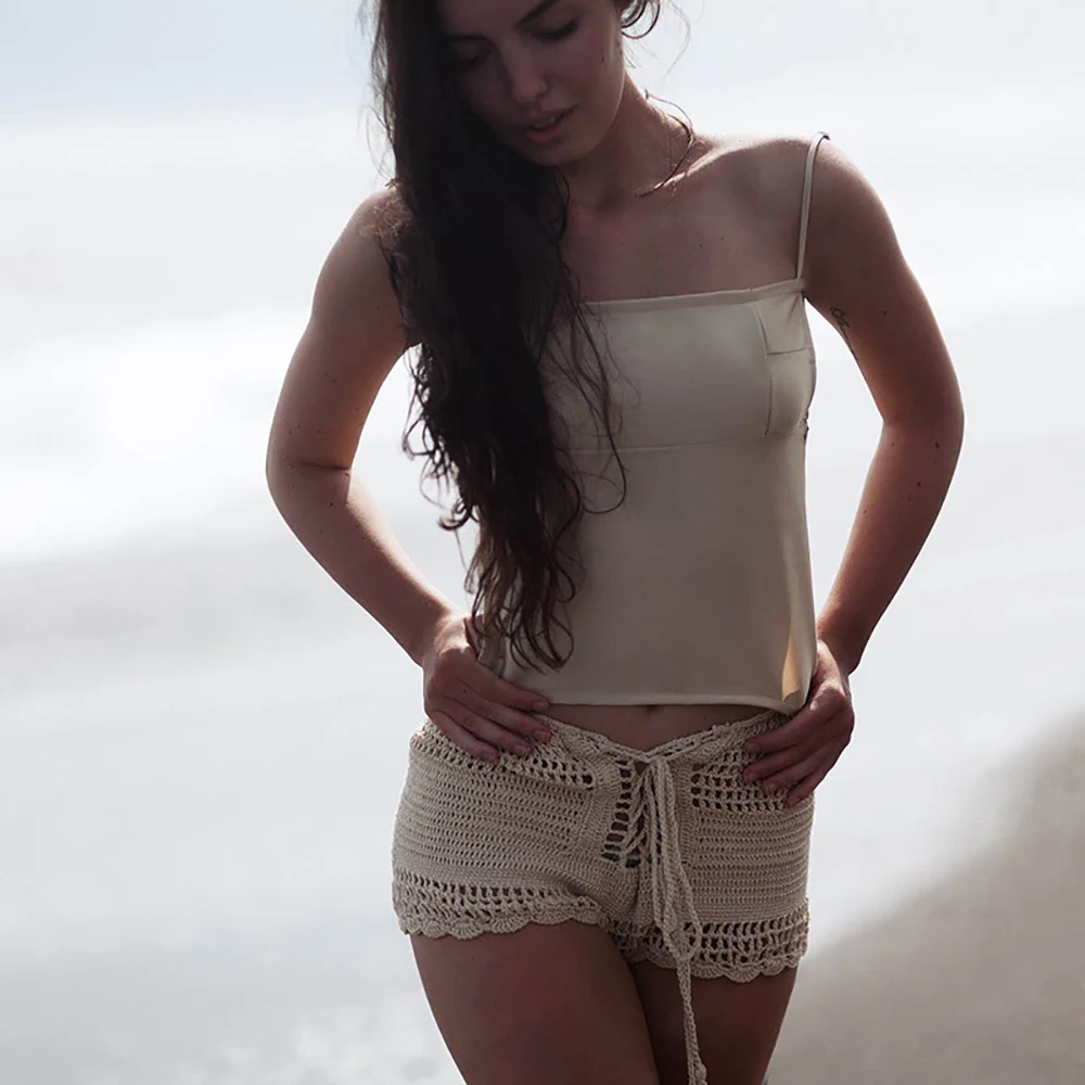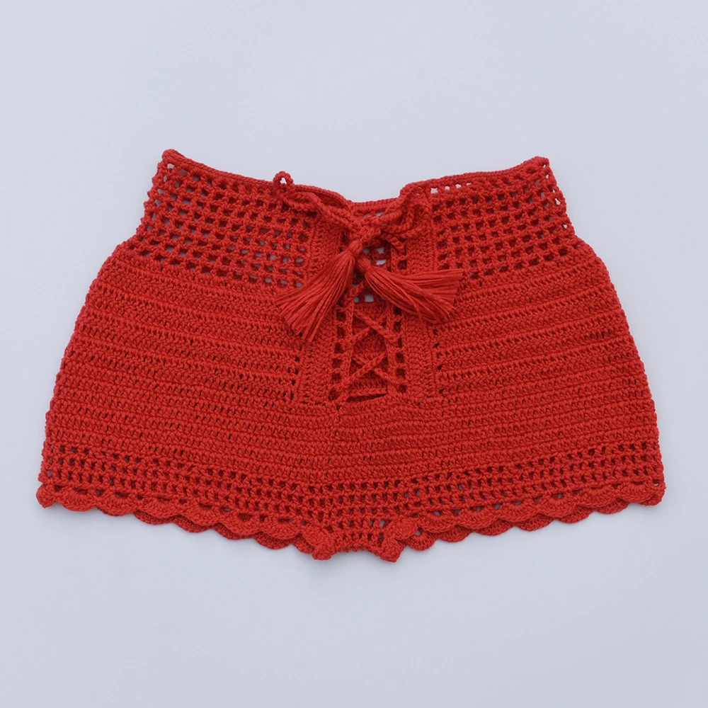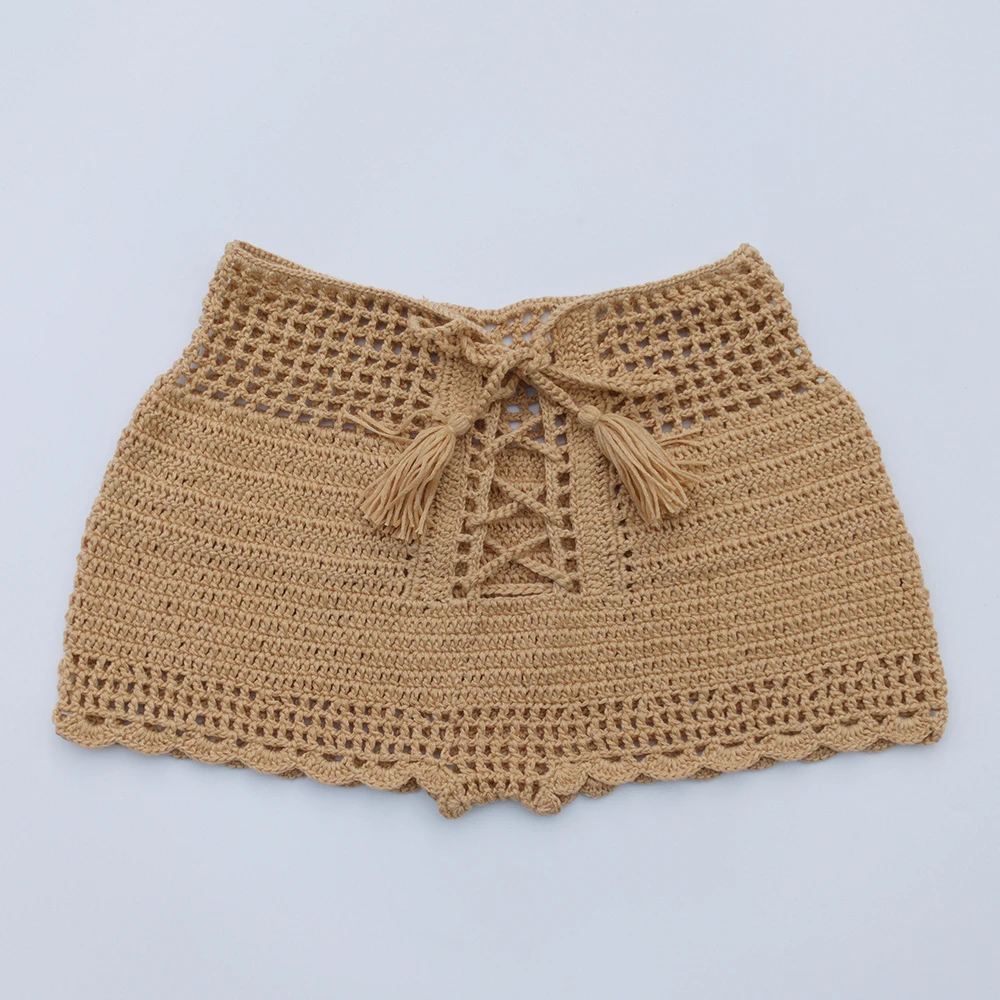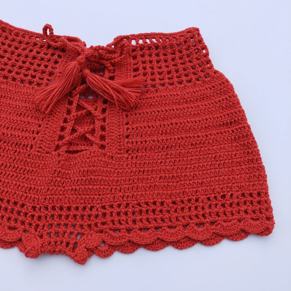 Вязаные женские трусики бикини, спортивные шорты для плавания, пикантные трусики с вырезами, накидка на бикини, брюки, пляжный летний купальник