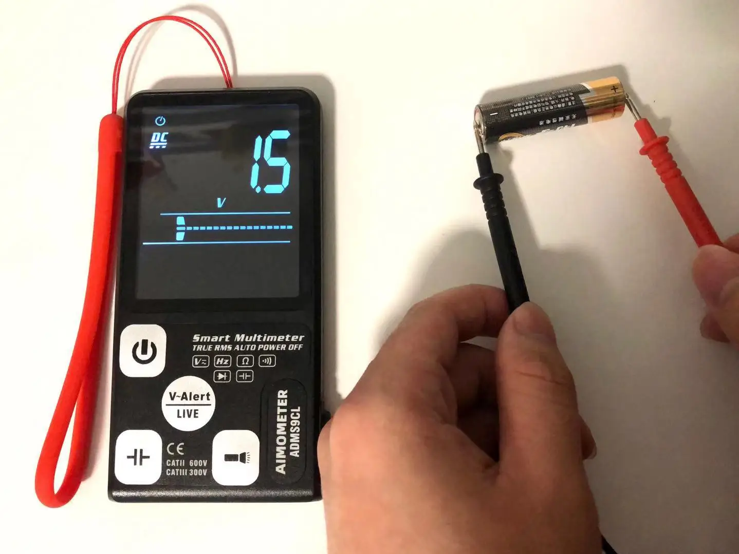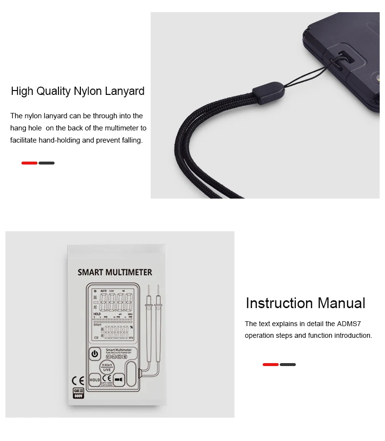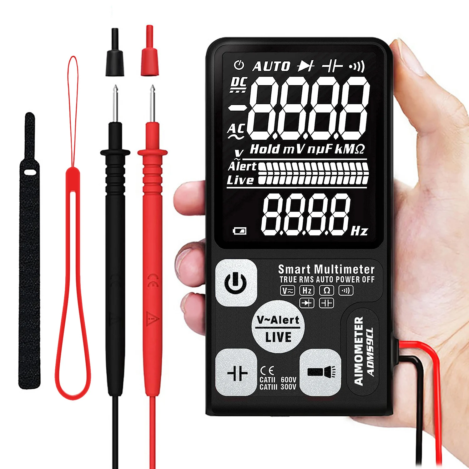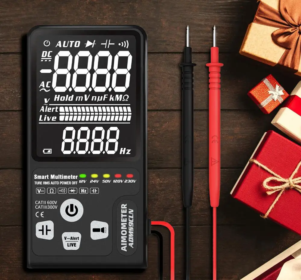 Истинного среднеквадратичного значения. Тест на напряжение постоянного тока: 600 В ±(0.8% + 3). Тест на напряжение переменного тока: 600 В ±(1.2% + 5). Тест на сопротивление: 10 МОм ±(1.2% + 3). Частотный тест: 1000 Гц ±(1.0% + 5). ADMS9CL постоянной ёмкости, универсальный конденсатор Тесты: 1000 мкФ/0,1 мкФ (3.5% + 8); 6000 мкФ/1 мкФ (4.5% + 10). ADMS9CL имеет очень быструю скорость тестирования. (Завершите тест в течение 1 секунд). Диод Тесты: менее 1,0 В светодиод автоматической идентификации.(ADMS9CL). V-Alert (обнаружение бесконтактного напряжения): Интеллектуальный дисплей опасного напряжения, высокого, среднего и низкого. (звуковой сигнал) Прямая проверка: звуковой сигнал тревоги, полоска ЖК-экрана Непрерывность: интеллектуальное напоминание о проводе для подключения или отключения. (Если сопротивление меньше 30 Ом, звуковой сигнал пчеловода) Питание: 3 в (CR2032)* 2 (входит в комплект) Размер: 136*67*12 мм Вес: 110 г