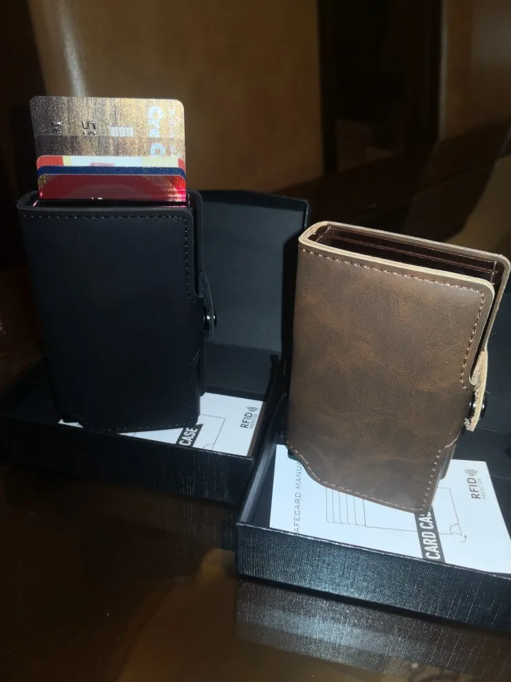 Винтажный двойной алюминиевый кредитный держатель для карт с рчид, Веганский кожаный кошелек для карт, держатель для карт для мужчин, автоматический выдвижной Чехол для карт