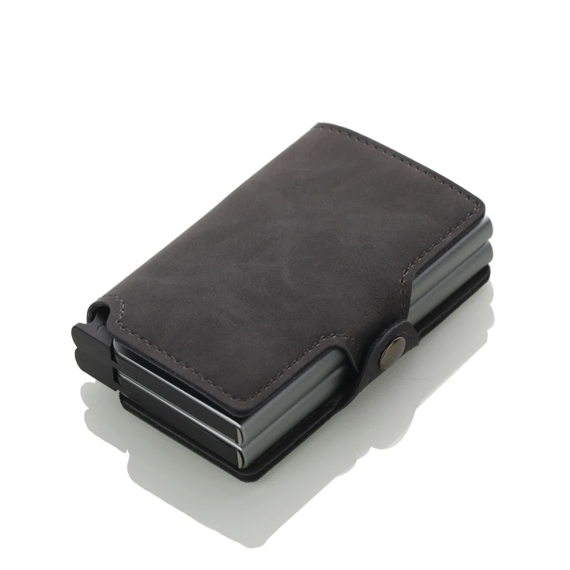 Тонкий двойные металлические держателя карты с функцией блокировки RFID кожа визитной карточки ID кредитница для мужчин тонкий двойной Алюминиевый Чехол кошелек мини-кошелек