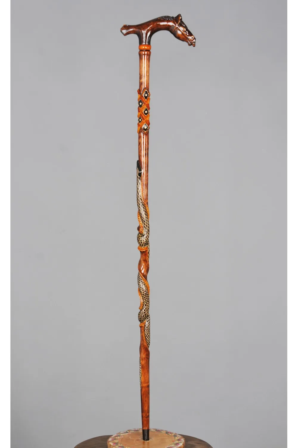 -Голова лошади и тисненая змеяТрость для ходьбы