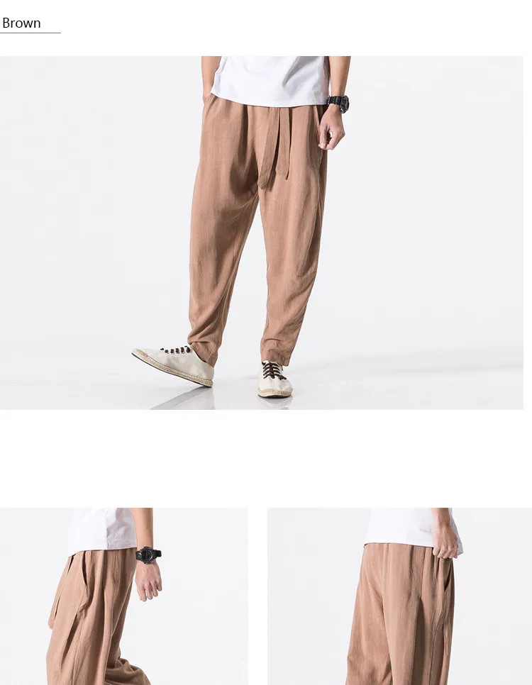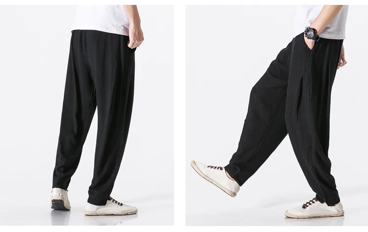 2019 Размеры плюс 5XL из хлопка и льна шаровары мужские летние пояс для бега Штаны мужские брюки Китайская традиционная одежда