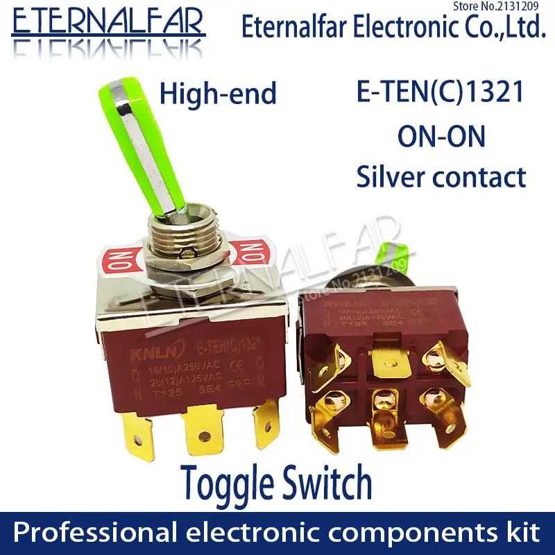 12 мм E-TEN1321 высококачественный серебристый контактный тумблер DPDT 16 А 250 В переменного тока ON-ON 6pin ручка сброс тумблер переключатель водонепроницаемый
