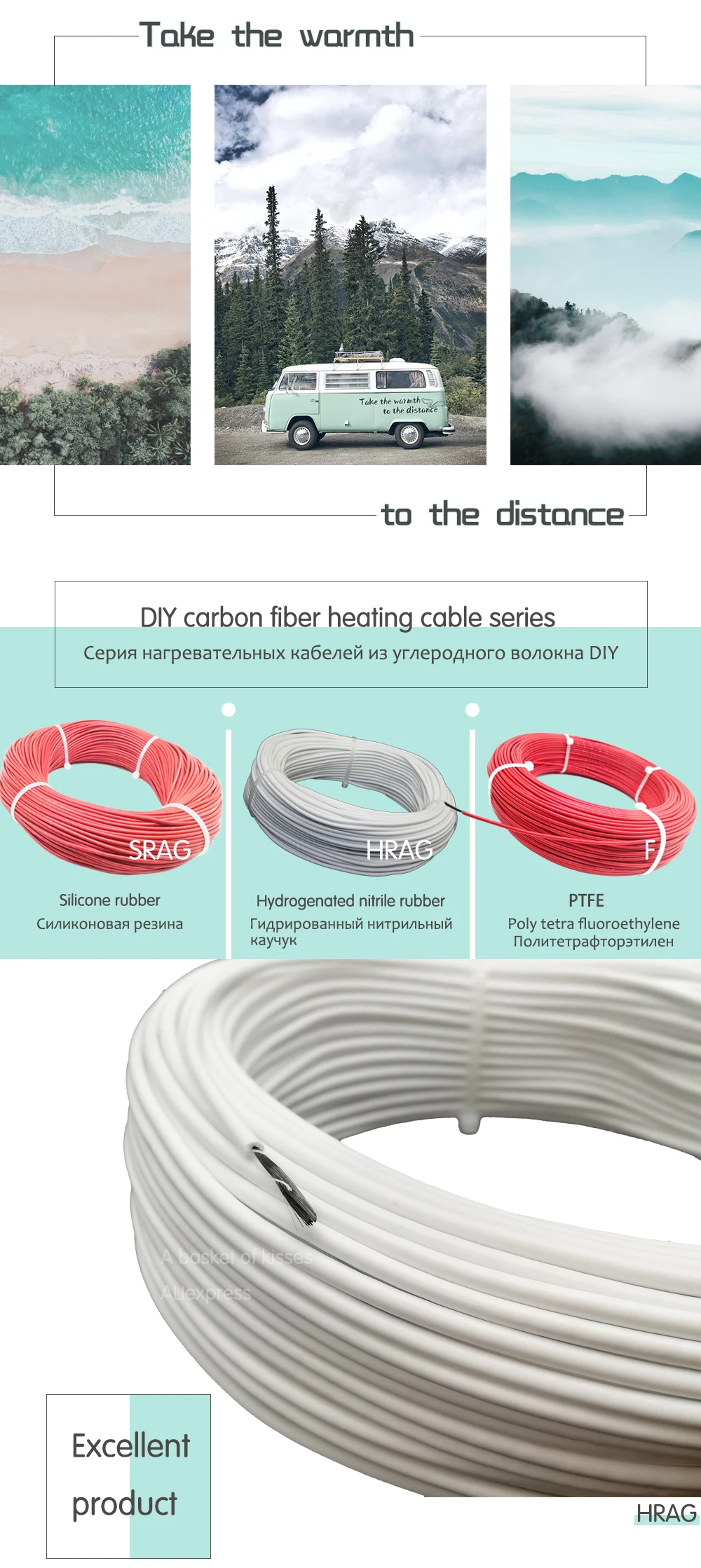 Нагревательный кабель из углеродного волокна HRAG, 100 м, 12k, 33 Ом, 5-220 В, подогрев пола, высококачественный Инфракрасный нагревательный провод, нетоксичный, без запаха