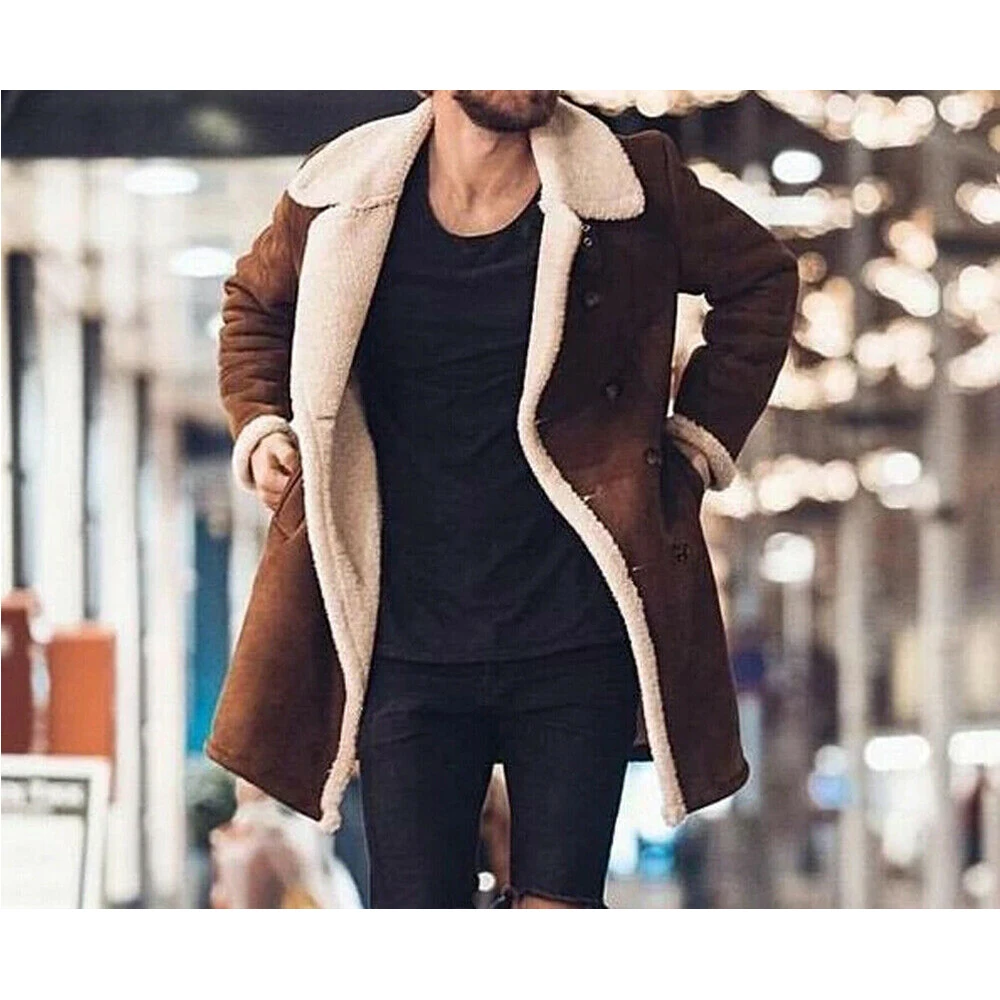 Тренчкот Мужской флисовый, с отворотом, теплая пушистая куртка, повседневная верхняя одежда, 2019, M-3XL