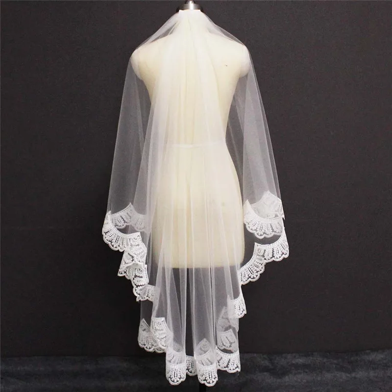 Кружевная Фата без гребня, однослойная, с аппликацией, свадебный ак...