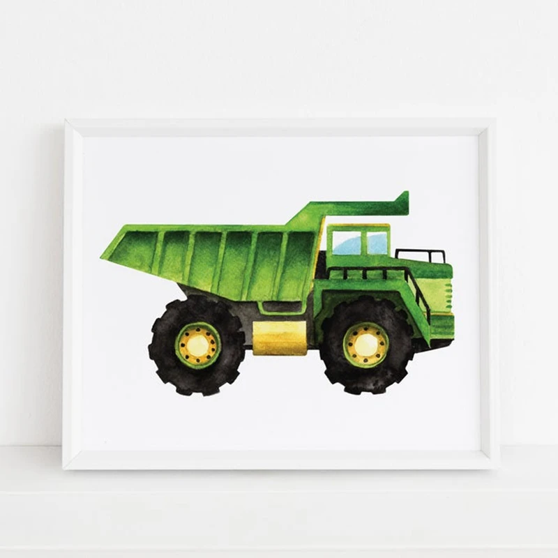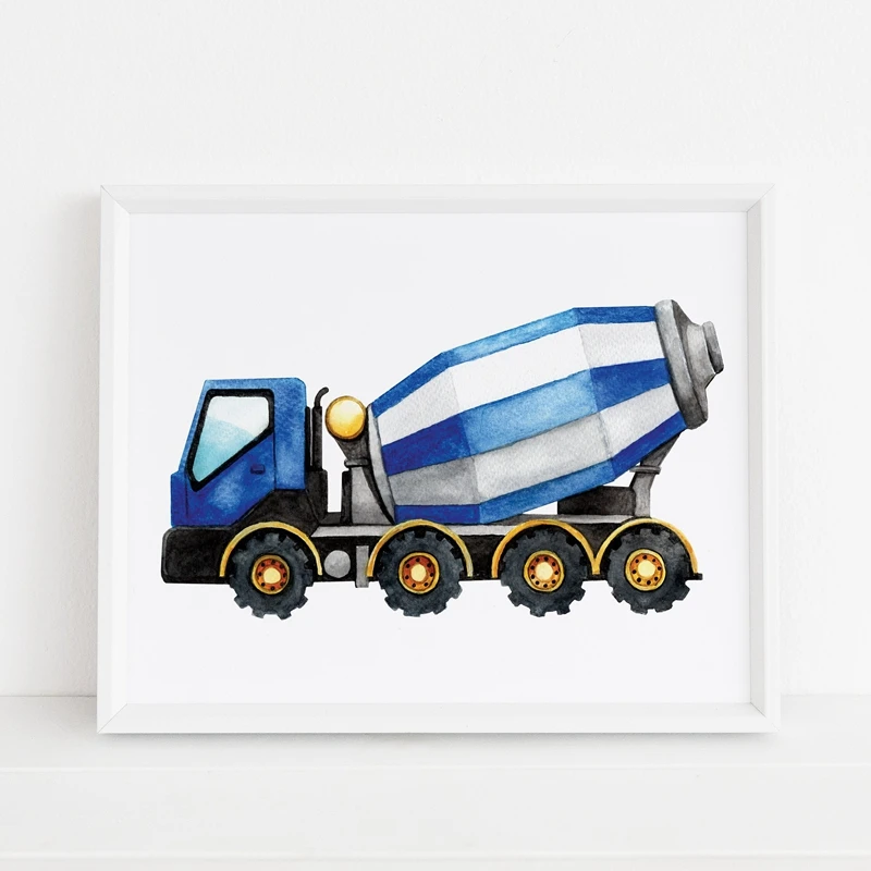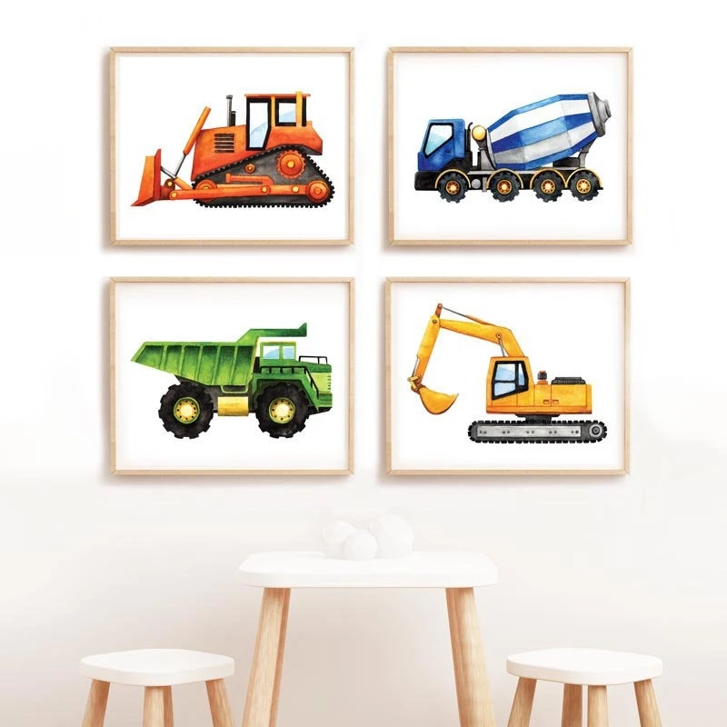 Строительные транспортные средства, акварельная живопись, холст, декор для детской комнаты, самосвал, грузовик-экскаватор, бульдозер, плакаты и принты, подарок для мальчиков