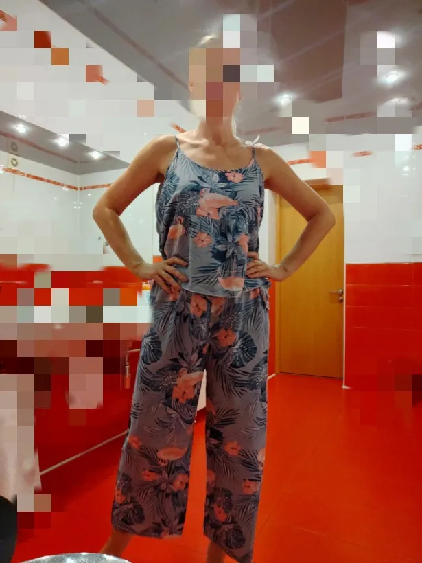 Пижама хорошая, топ прям хороший свободный, но проблема всех их пижам в тугих и небольших обхватах резинок, причём вышитых, которые не расшить и не заменить. Туго, жмёт. Дамам с животиком будет давить.