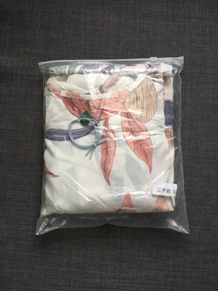 Пижама классная! С продавцом не общалась. Оплатила ночью 5 сентября, 6 уже отправили, 16 уже забрала в пункте выдачи DPD в Казани. Перед тем как надевать, постирала в тёплой воде, ничего не село. Вода была грязная, так что обязательно стирайте перед использованием! Рост 158, штаны надела на талию, Длина вообще ок! Небольшие минусы: 1. На брительке одной был нелепый бантик, но легко оторвался. 2. ПЕред кимоно не прошит/не обделан клеевой лентой, поэтому при носке постоянно раскрывается или загибается (на фото видно), но фигня, думаю, клеевой как раз сделаю, чтобы такого не было. 3. Бежевый цвет темнее, чем на фото продавца, но не критично. А я так я очень довольна. Швы действительно везде ровные, аккуратные. Спасибо за крутую пижаму!:)