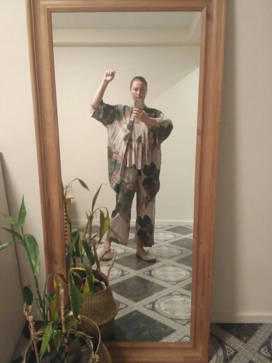 Самая лучшая моя покупка!!! Большое спасибо продавцу за пижаму! Отличный комплект! Натуральная струящаяся ткань, приятно в ней и спать и по дому ходить) и мужу очень нравится как я в ней выгляжу) заказывала М, на свой обычный М (рост 163) хотя я сейчас жду ребёнка и стала немного шире- но пижама «села» отлично на животик и думаю после родов тоже будет в ней хорошо. Посылка пришла феноменально быстро, за 2 недели! Обязательно закажу ещё!