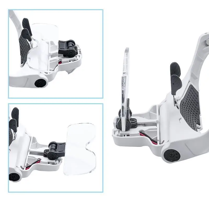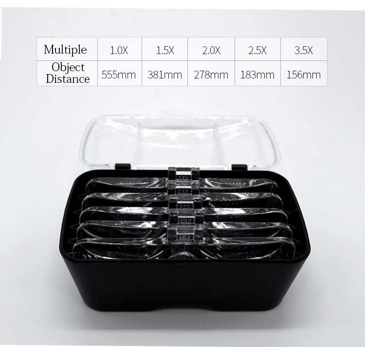 Особенности: Увеличительное стекло, светодиодный, удобный для использования. Если у вас довольно большая нагрузка, долгие рабочие часы, необходимо носить этот продукт в течение длительного времени, очки могут быть заменены в состоянии гарнитуры, что облегчает работу! Пять виды объективов с разными увеличениями доступны. Отрегулируйте угол объектива, чтобы увеличить фиксацию пружины. В условиях низкой светильник окружающей среды может открыть светодиодный светильник ing источник, с 5 Расширенный тип может изменить увеличение объектива. Угол освещения тоже регулируется. Технические характеристики: Цвет: белый Материал линз: Акриловая линза Аккумулятор: 3 батарейки AAA (не входят в комплект) Объектив: 1.0X / 1.5X / 2.0X / 2.5X / 3.5X Область обзора: 1.0X: 250 ~ 350 мм 1.5X: 200 ~ 300 мм 2.0X: 175 ~ 275 мм 2.5X: 150 ~ 250 мм 3.5X: 80 ~ 120 мм Размер: как на картинке Посылка список: 1 * Рамка 1 * повязка на голову 5 * объектив с коробкой