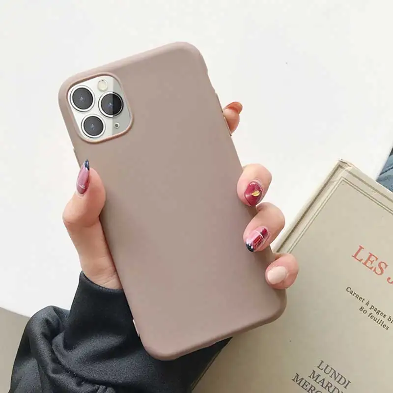 Новый однотонный чехол для iPhone 11 Pro Max, чехол для iPhone 12 mini SE 6 6S 7 8 X XR XS MAX, мягкий пластиковый чехол карамельного цвета для iPhone 8 Plus