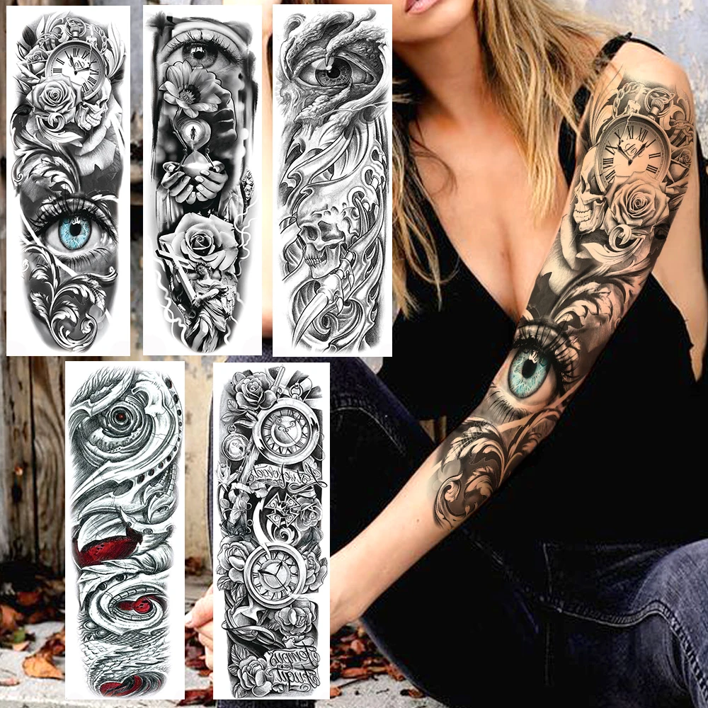 YURAN реалистичные Временные татуировки на руку для мужчин и женщин, искусственные татуировки сглаза Роза, наклейка на водную ручку, боди-арт, татуировки