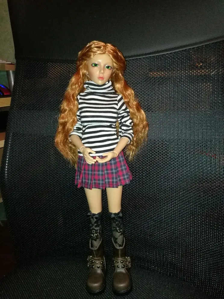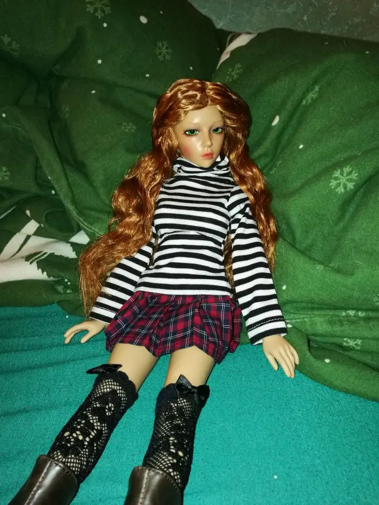 Очень красивая кукла, которая любит ее с первого момента! Она быстро пришла и была упакована в целости и сохранности, коричневый цвет выглядит очень мило! Она довольно милая, поэтому некоторые средние платья или рубашки 1/4 не подойдут, но она стоит того, чтобы сделать новую одежду!