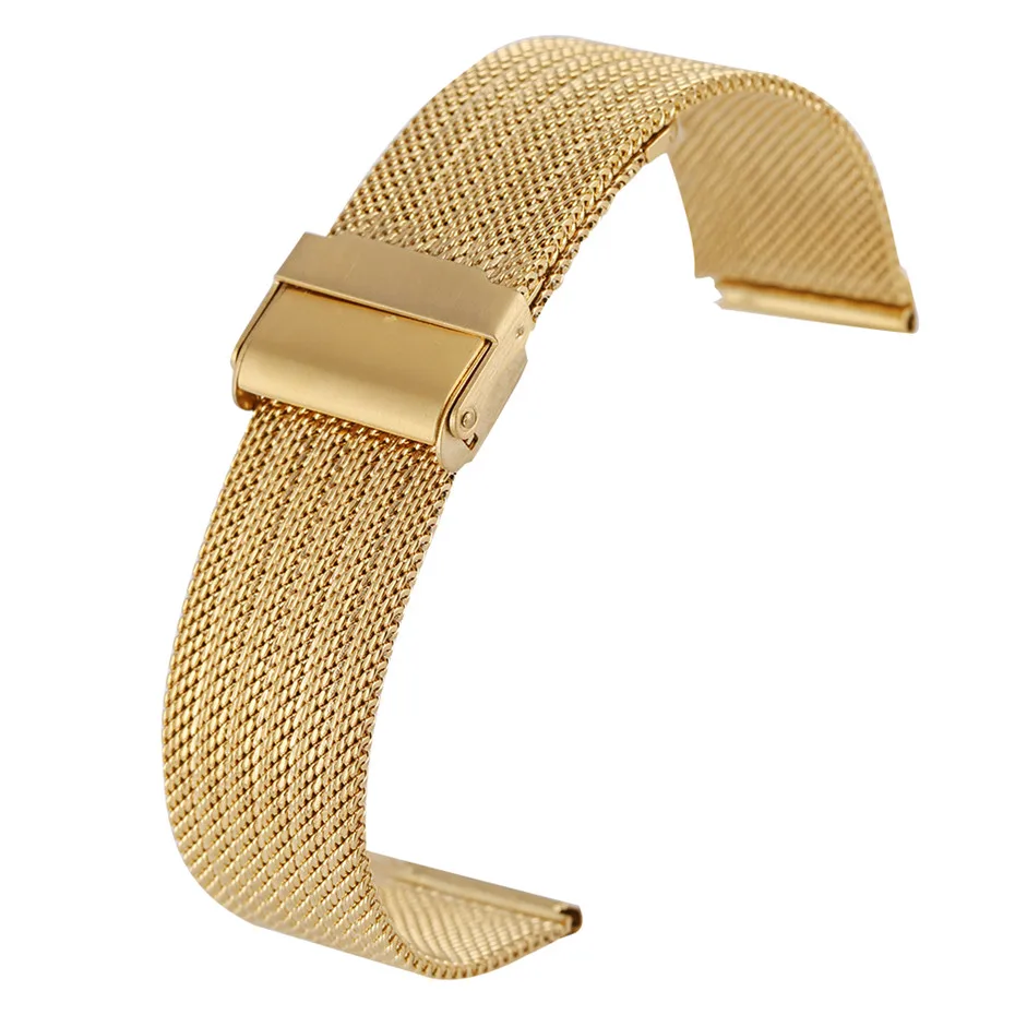 Ремешок для часов из нержавеющей стали, сменный сетчатый Браслет для наручных часов, 18202224 мм, серебристыйчерныйзолотойрозовое золото с застежкой-крючком