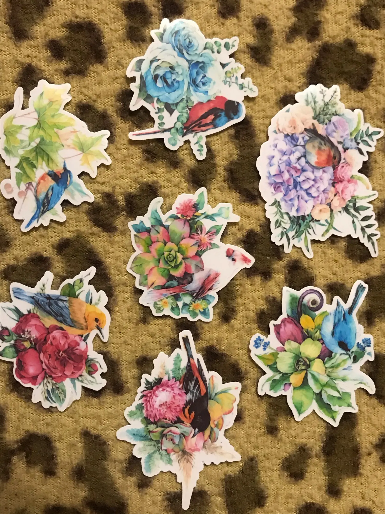 Красивые наклейки с птичками в цветах. Немного не такие яркие, как на фото, просто более нежные!
