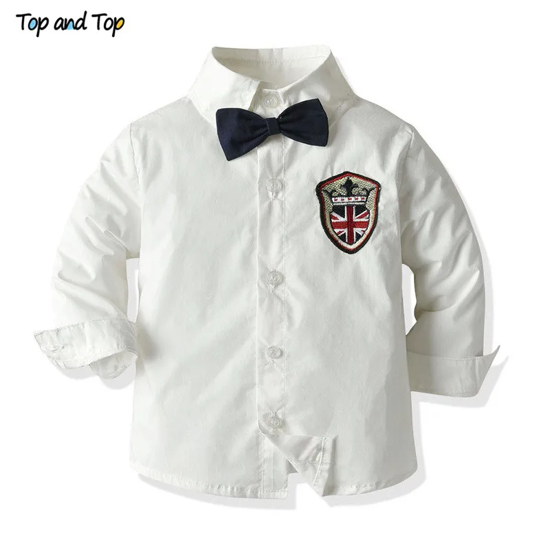 Рубашка с длинным рукавом и галстуком-бабочкой, для мальчиков