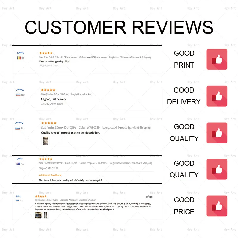 4. Этот холст отличного качества без внутренней и внешней рамки, чтобы сохранить стоимость доставки, но этот размер является обычным размером фоторамки, и вы можете легко получить готовую рамку.