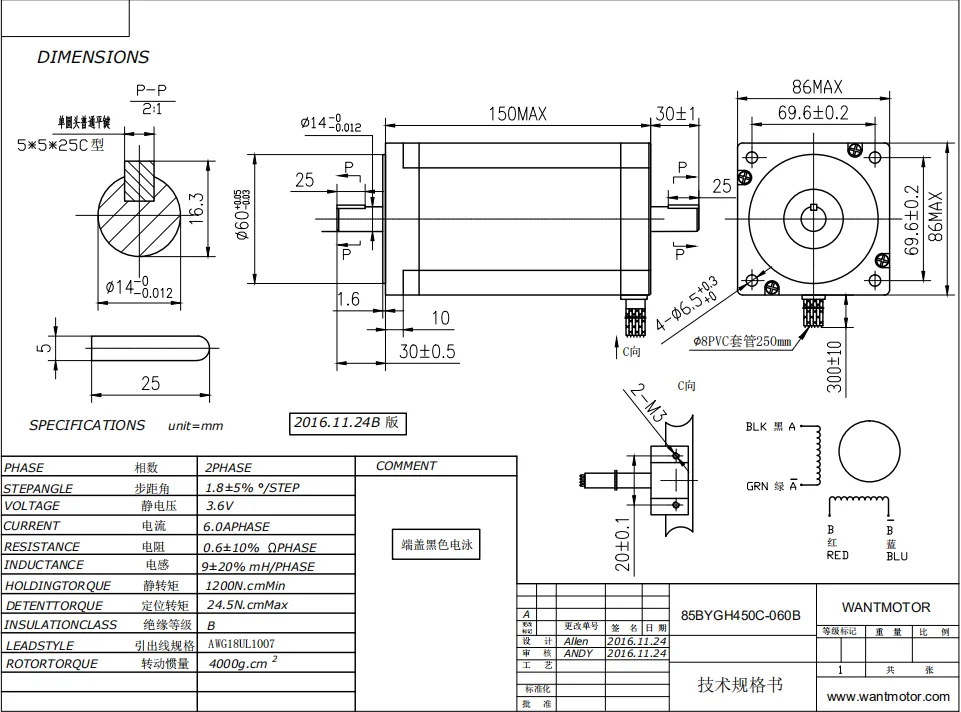 Бразилия бесплатно! CNC Wantai Nema42 шаговый двигатель 110BYGH150-...