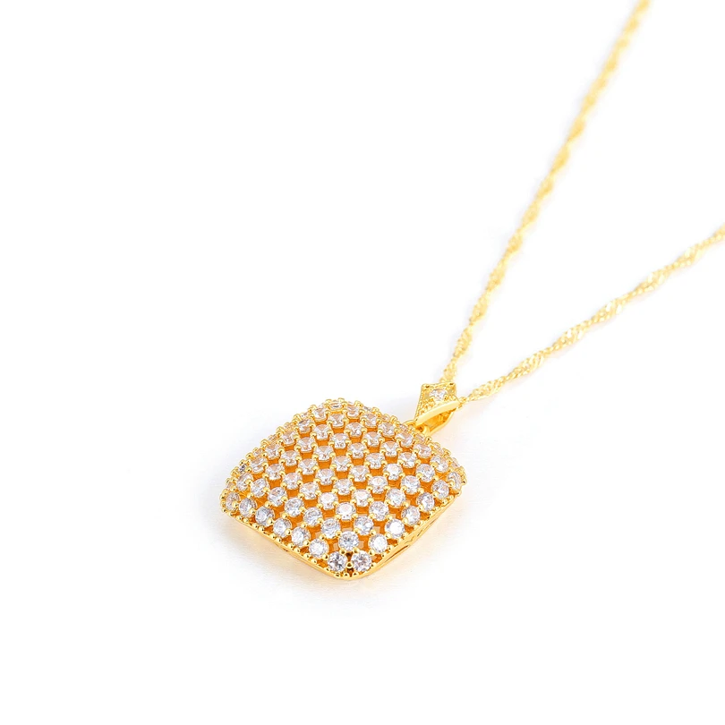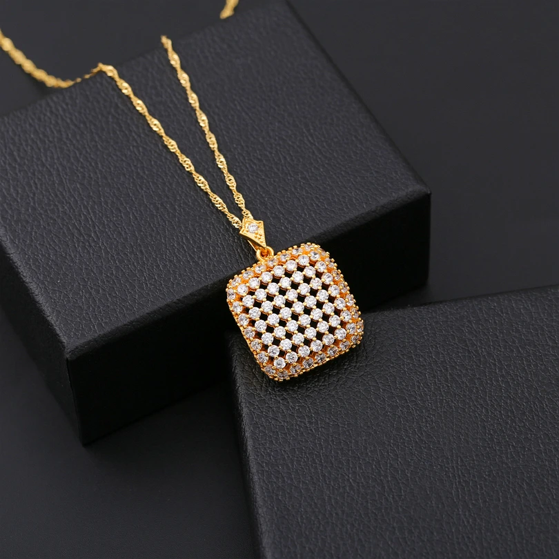 Металлов Тип: медное ожерелье Тип: цепочки ожерелья Пол: для мужчин и женщин; Обувь унисекс для девочек Тип изделия Тип: Ожерелья Подвески Размеры: 2,3*2,3 см цепи Длина: 45 + 5 см цепочка Тип: волнистый материал цепочки: фианит ААА + медь позолота узор: геометрический и Цветочный Стиль: классический/модный/Винтажный/элегантный/OL/сладкий/Романтический повод: вечерние/Свадебные/помолвки/невесты/офиса/праздника/дня рождения/юбилея/подарка/банкета/уличного оснастки/шоу на социальной платформе/модное шоу это ювелирное изделие соответствует экологическим требованиям ЕС
