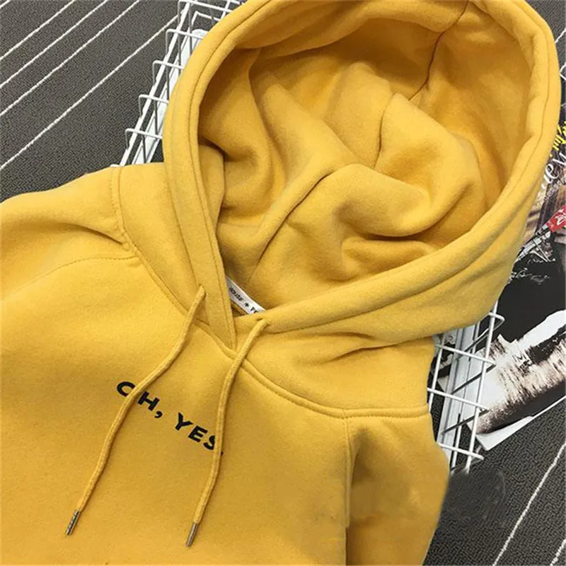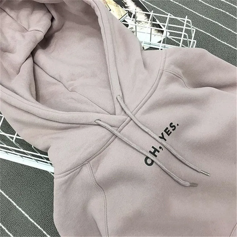 Толстовка Женская с надписью Oh Yes, повседневный двухслойный свитшот в стиле Харадзюку, флисовый розовый пуловер, утепленный Свободный свитшот, зима 2021