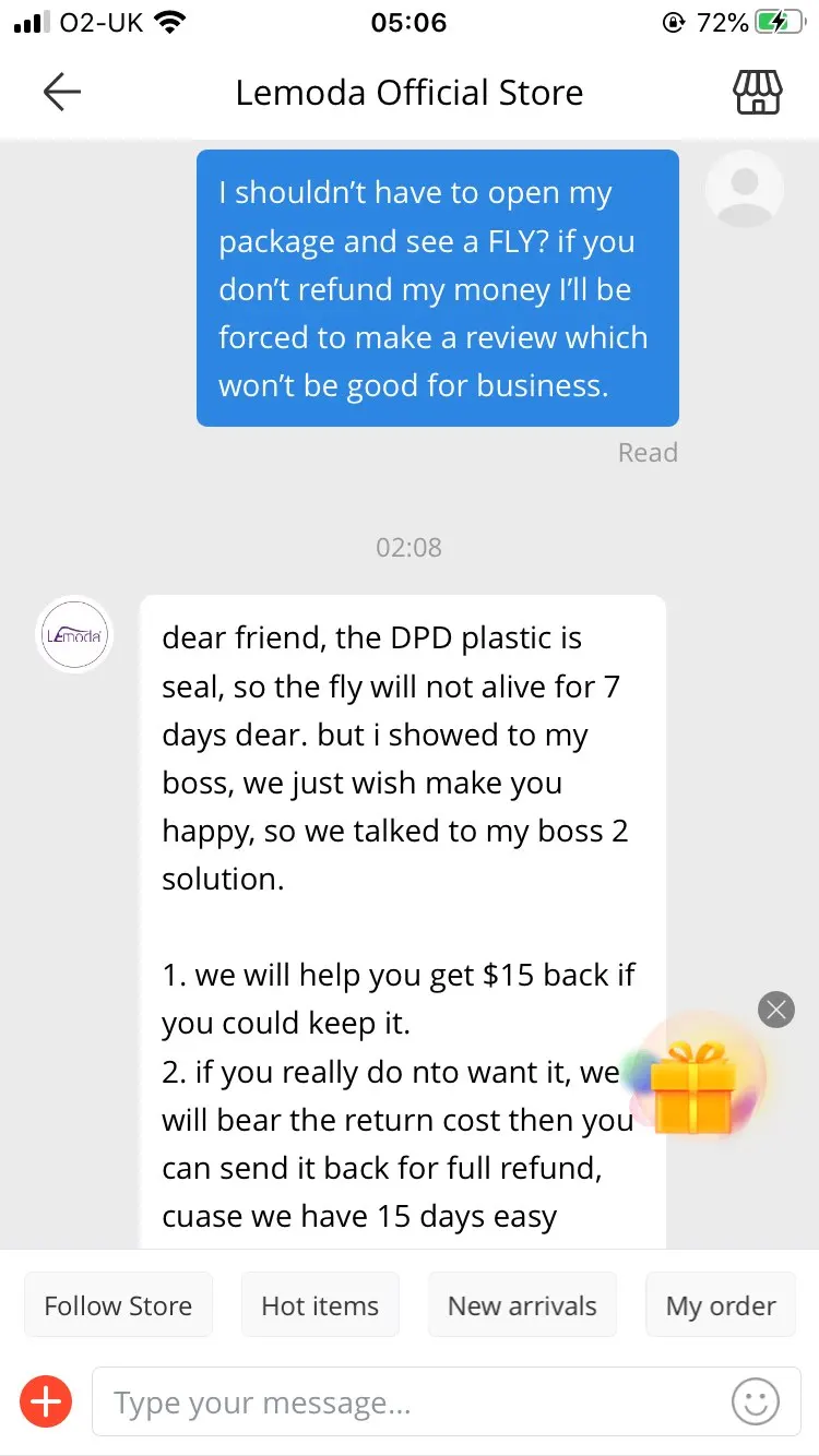 This is not a fake review.I put 5 stars so you guys could see it,I’m BEGGING DO NOT BUY THIS WIG.When I opened the package I saw a FLY on the frontal and it was still ALIVE.Lemoda tried to say it couldn’t have been alive or from their warehouse because it would’ve been dead by arrival but explain to me why it was ALIVE INSIDE THE PLASTIC WALLET THING where the hair was being kept? I was so disgusted and they didn’t want to refund me,they offered to give me £8 back like? Please just do not buy this hair,because in case of refunds,LEMODA WILL NOT REFUND YOU.The fly evidence is the first picture,the rest is the wig after I removed the fly,the wig is okay,but please prepare for the worst when ordering,Lemoda are sus af.
