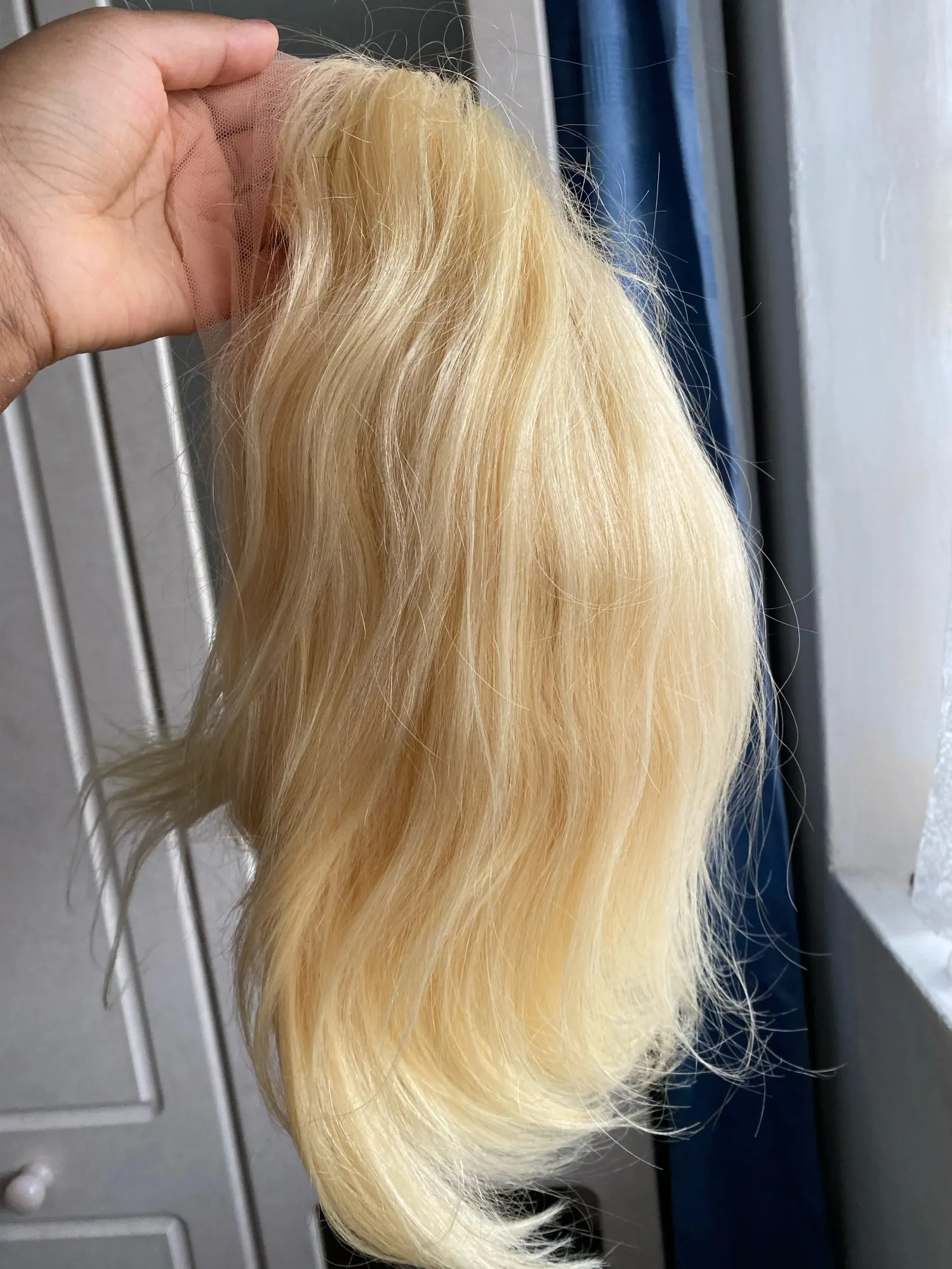 Парик красивый, я окрашивал корни и подкрашивал его, и он получился великолепным. Точно соответствует длине и полноте. Кружево легко расплавить. Только совет, который я бы дал, это не чистить его, когда он мокрый, он будет запутываться больше. Просвечивает, но это типично для 613.