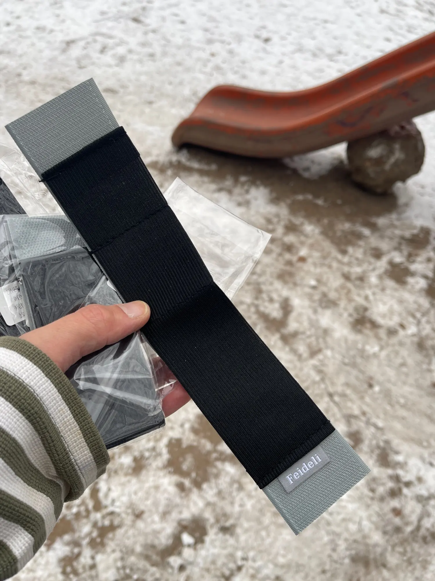 Приехали быстро, 20 см... маленький оказался. лента разделена на 3 кармашка...можно отвёртку положить.. Об устройстве: резинка пришита к ленте с крючками, резинка растягивается плохо. В реальности резинка 21 см, а вся лента целиком 25 см.