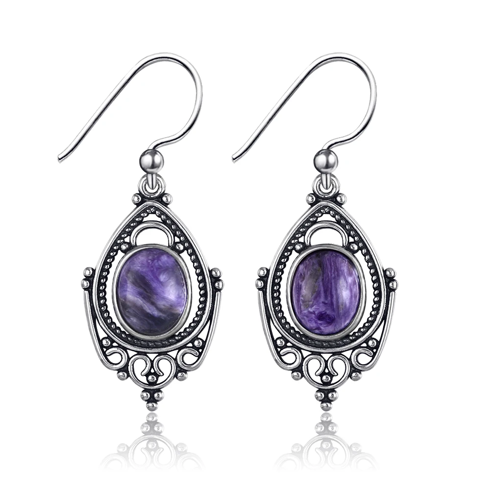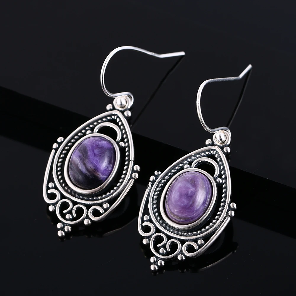 Женские серебряные серьги с лунным камнем 8 х10 мм