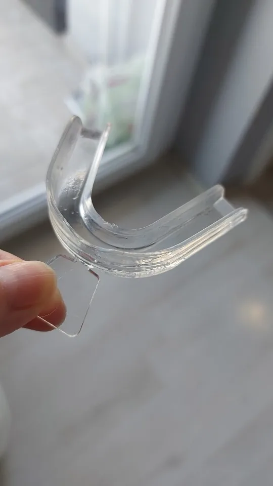 Сделала всё как положено, положила в горячую воду, капа стала липкой, быстро распределила по верхним зубам, прижала нижними зубами, руками помогла распределить по дёснам. Затем в холодную воду. Вышло идеально. Но! Капа вызывает рвотный рефлекс! Почему нигде об этом не пишут? Оказывается, чтобы капа не вызывала рвотный рефлекс, она не должна попадать на моляры (6, 7, 8 ые зубы). В итоге подрезала по бокам, внутри чуть-чуть срезала и убрала хвостик. Первая ночь прошла отлично!
