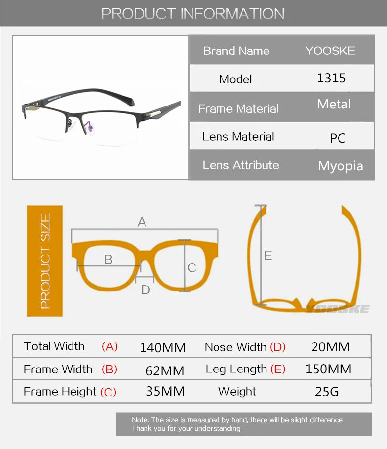 Оправа унисекс для очков для близорукости YOOSKE, металлическая оправа для очков для близорукости,-1-1,5-2-2,5-3-3,5-4 -5-5,5-6