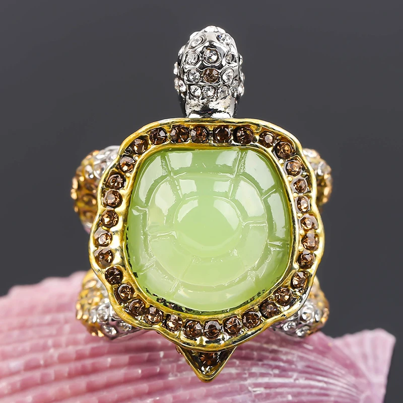 Стразы женские в виде зеленых ракушек, кольца с украшением в виде черепахи