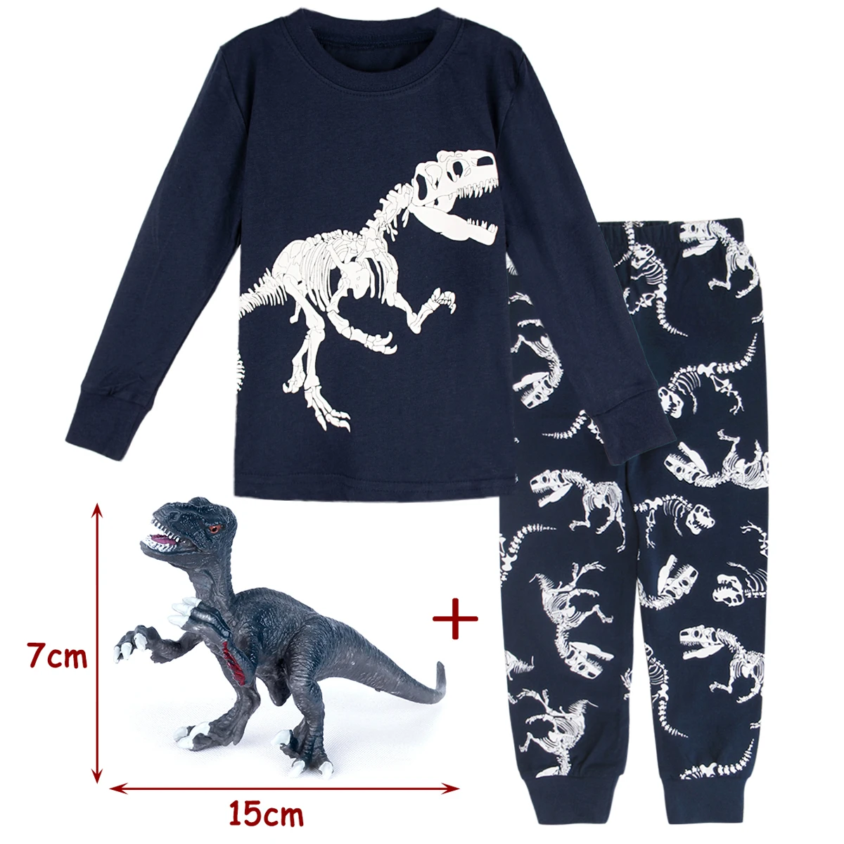 Пижамный комплект для маленьких мальчиков, детская одежда для сна с динозавром, детский мультяшный подарок на Новый год, топ + штаны, Рождественская одежда из 100% хлопка