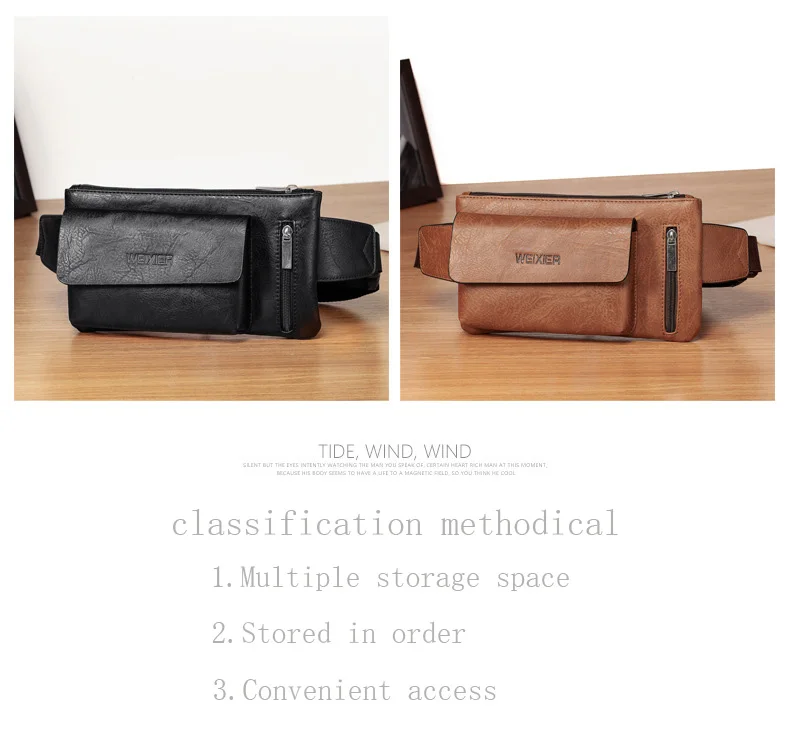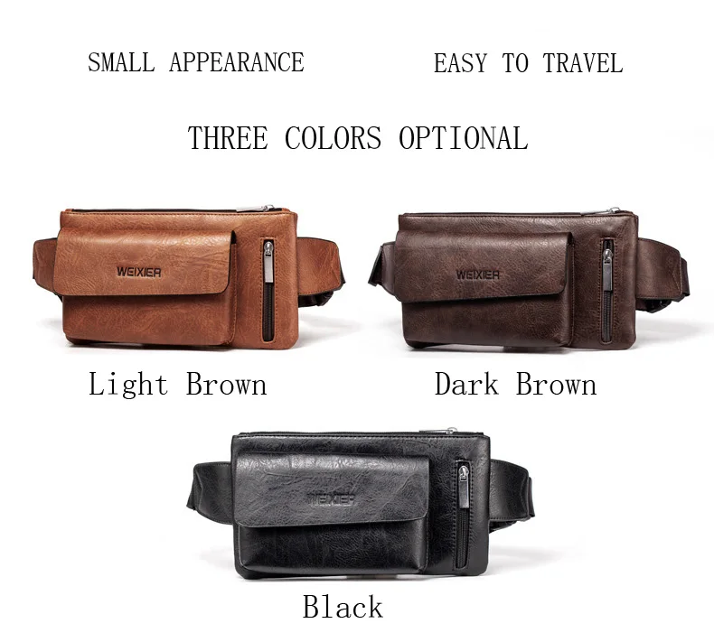 Кожаная поясная сумка для мужчин, однотонные водонепроницаемые Модн...