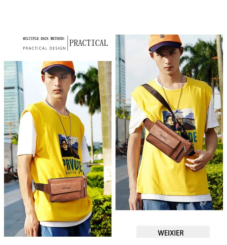 Повседневная прочная поясная сумка для мужчин, водонепроницаемая дорожная кожаная сумочка на пояс, мужской нагрудной мешок через плечо для телефона