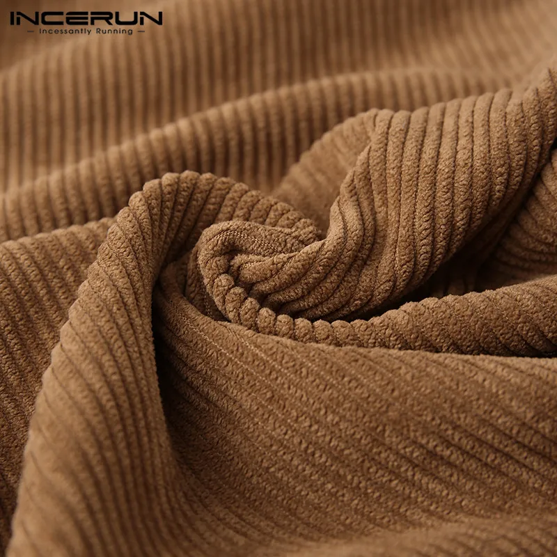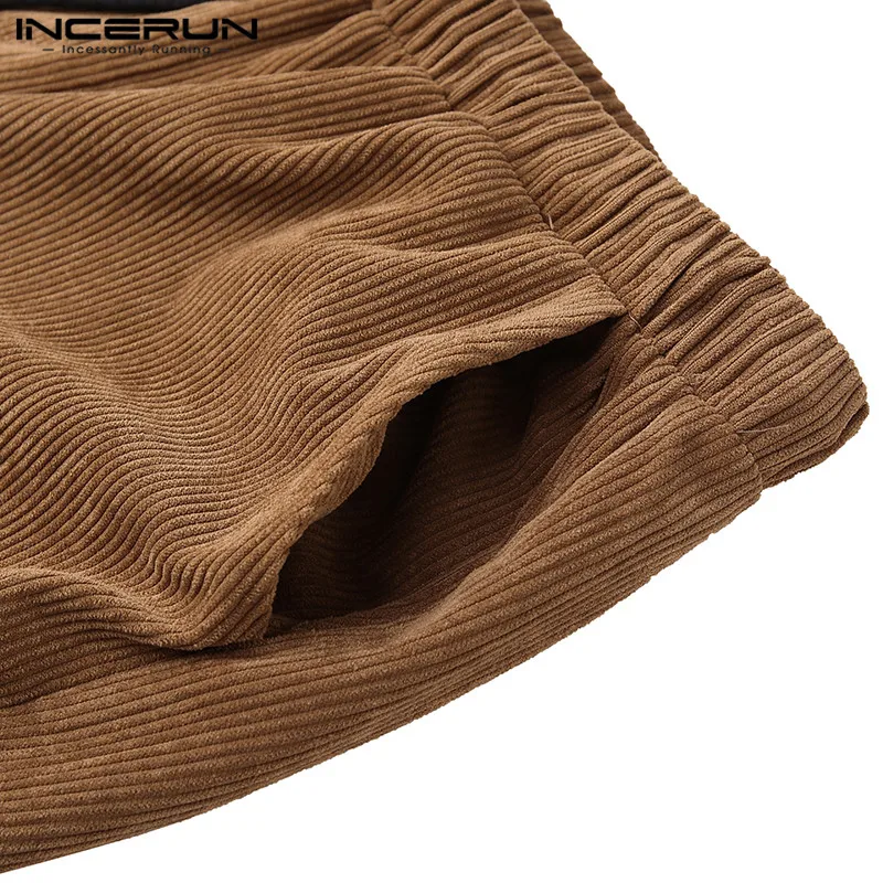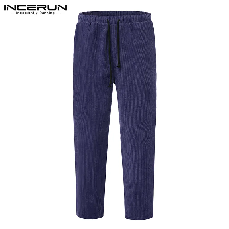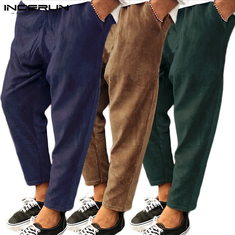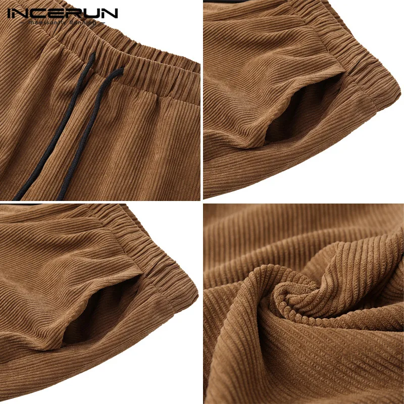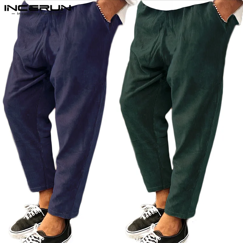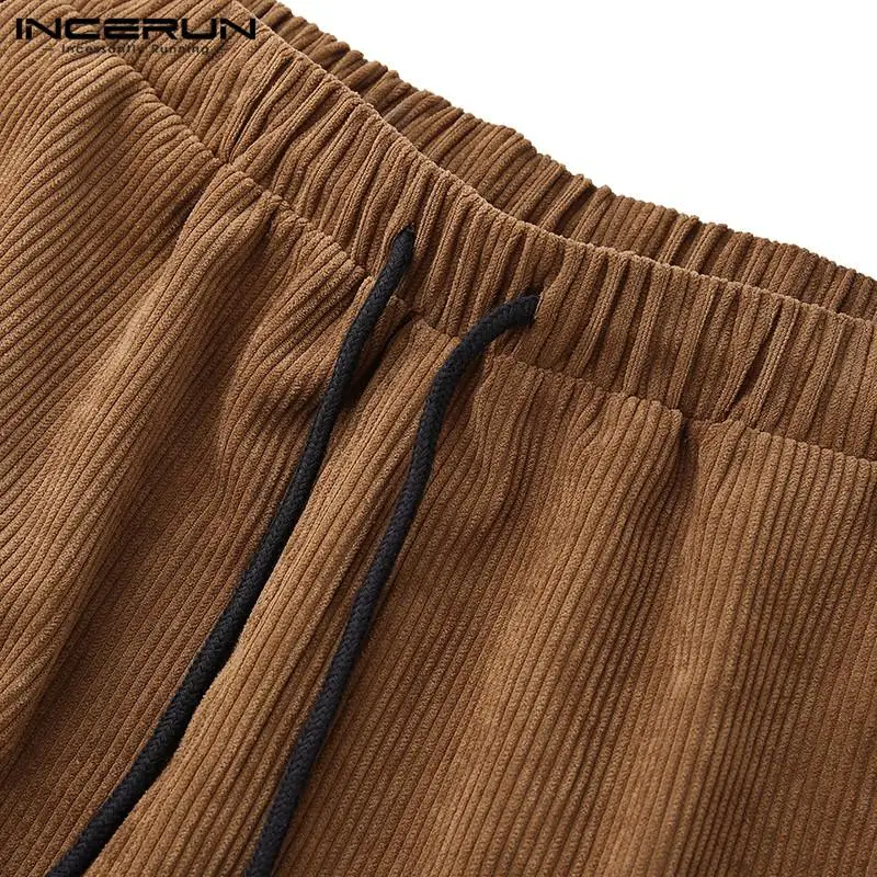 INCERUN, мужские однотонные вельветовые повседневные Джокеры, спортивные штаны с эластичной резинкой на талии, модные мужские Штаны-шаровары со шнуровкой