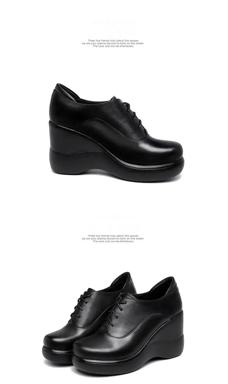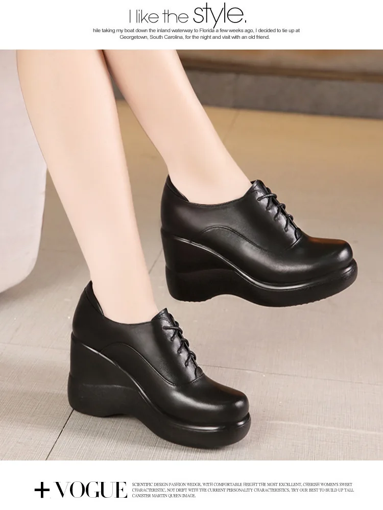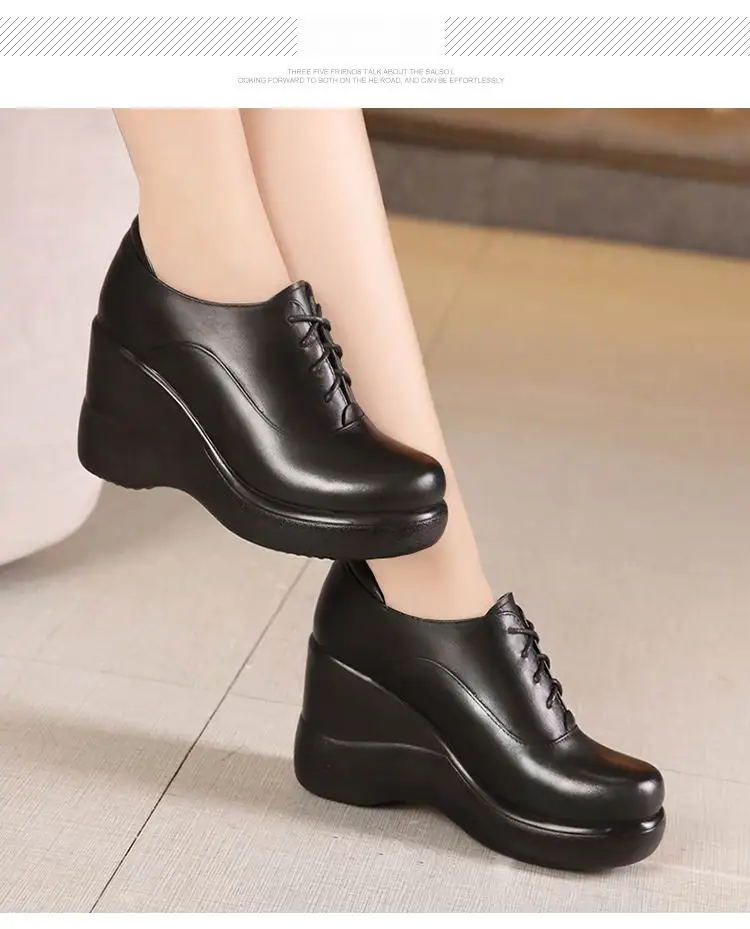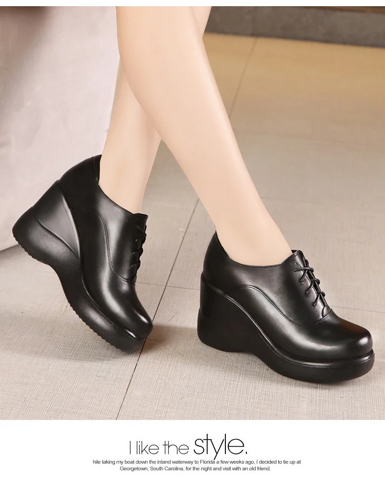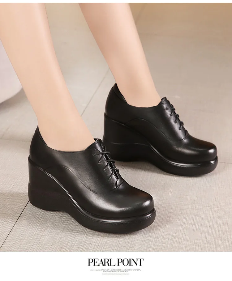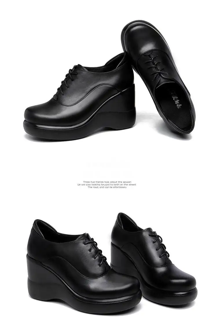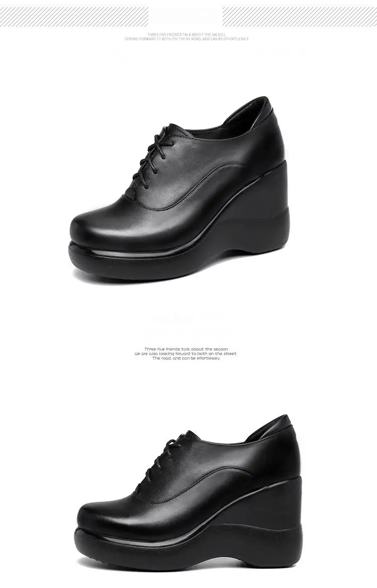 GKTINOOженские туфли на танкетке со шнуровкой; Коллекция 2022 года; Осенние туфли-лодочки на платформе; Женские кожаные офисные туфли на высоком каблуке; Женская обувь размера плюс 33-43