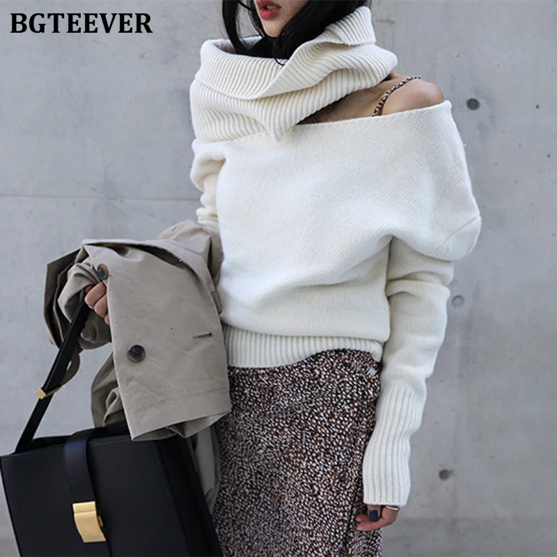 BGTEEVER 2019 зимняя водолазка, женский свитер, Модный женский вязаный пуловер с вырезами, Женский вязаный джемпер, топы pull femme