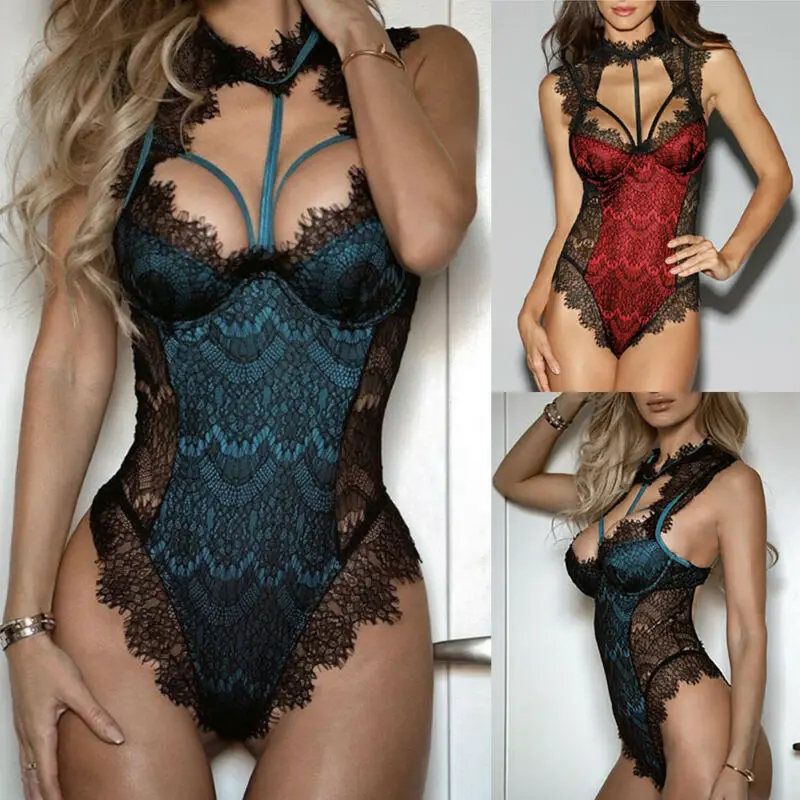 Новое женское сексуальное кружевное нижнее белье, комбинезон, стринги, нижнее белье, сине-красное