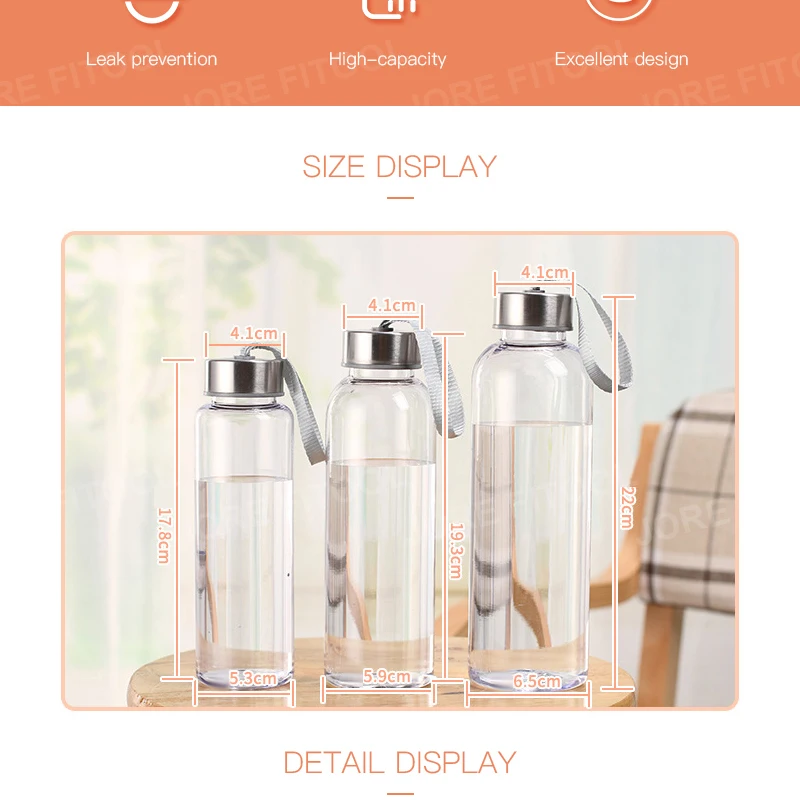 Параметры: Размеры: 17,8*5,3 см, 19,3*5,9 см, 22*6,5 см Цвет: Прозрачный Емкость: 300 мл, 400 мл, 500 мл Особенности: Еда класс пластмассы для пищевых Портативный Светильник, прочный Посылка включает в себя: 1 х бутылка для воды