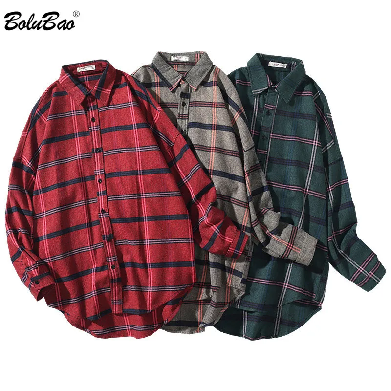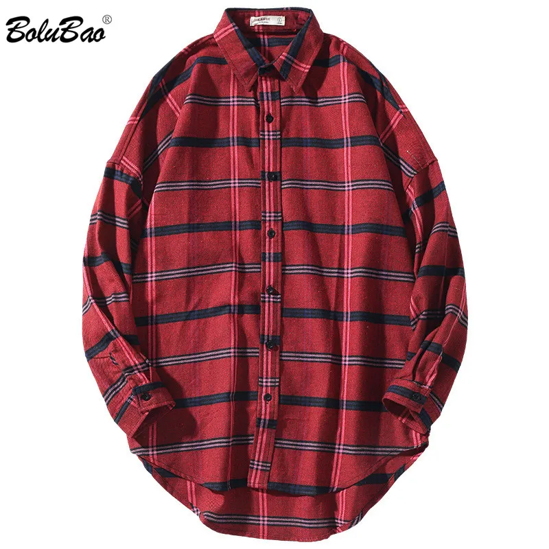 Мужская клетчатая рубашка BOLUBAO, Повседневная Длинная рубашка с длинными рукавами и отложным воротником, весна 2019