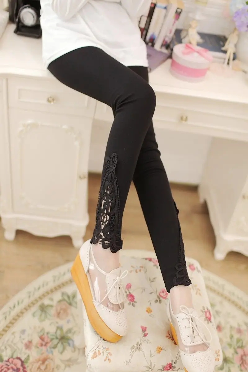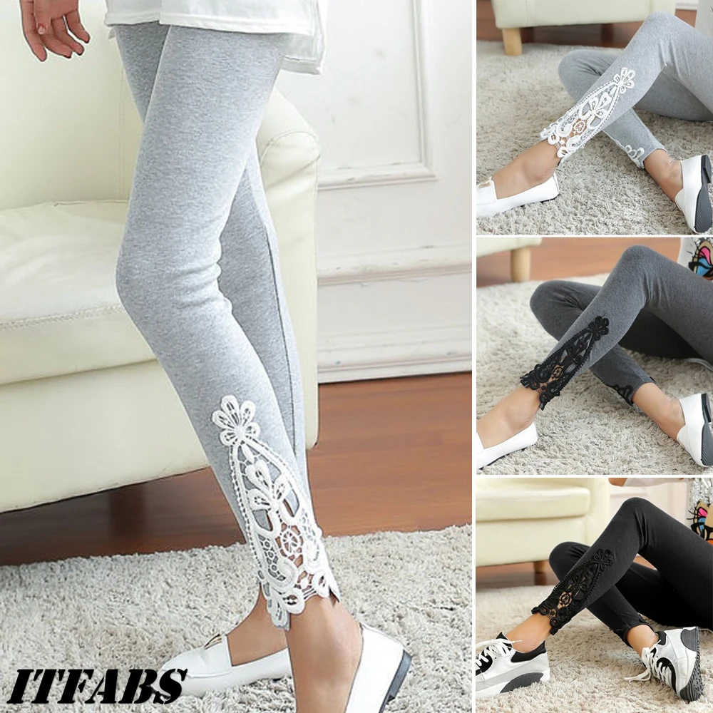Женские облегающие эластичные леггинсы с кружевом и цветочным узором