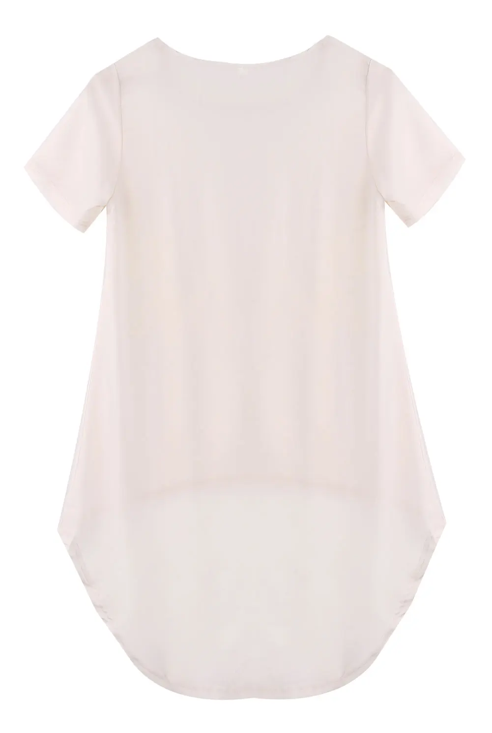 Летняя женская шифоновая футболка с круглым вырезом, асимметричная ...