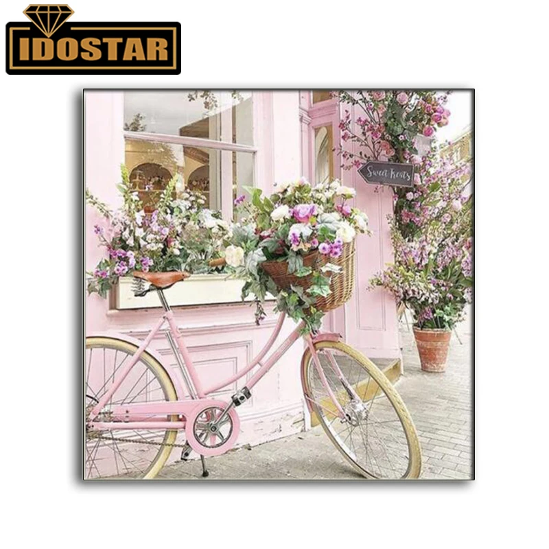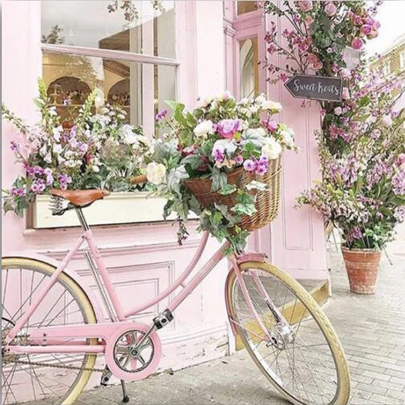 Розовый велосипед с алмазной краской, полный дрель, велосипед с цветами, сделай сам, вышивка крестиком, рукоделие, Townscape, холст, краска, подарок, домашний декор