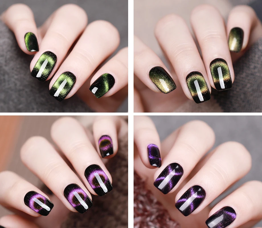 Магнитный для дизайна ногтей характеристики изделия: бренд: ROSALIND Название: 9D Galaxy гель кошачий глаз Объем: 5 мл цвет: 6 цветов вылечивается: УФ/светодиодный лампа Примечание: нужны магнитные палочки, чтобы получить эффект мы уверены, что наш 9D Гель-лак для ногтей с эффектом «кошачий глаз» является лучшим качеством на AliExpress. -Качество-наш первый приоритет. -Светильник, почти без запаха, мы применяем только органическую текстуру для защиты вашего здоровья. -Эффект сохранит от 15 до 20 дней. -Hotting цвета опционально, и изменения цвета в разной температуре. Шаг за шагом: 1. Подготовьте ногти с базовым покрытием, и вылечите его под ультрафиолетовая/Светодиодная лампа. 2. Нанесите гель кошачий глаз 9D. (Не вылечивайте!) 3. Используйте магнитную палку близко к ногтю. Чем ближе расстояние, тем более заметный эффект. Но держите подальше от геля. Эффект зависит от линии магнитной палочки и направления, в котором вы его поместите. 4. Вылечите его под УФ/светодиодный лампой. 5. Нанесите верхнее покрытие и вылечите его под ультрафиолетовая/Светодиодная лампа. Для удаления:-1. Замочите ногти в акриловом удалителе около 5 минут,-2. Аккуратно разорвите весь кусок эмали для ногтей на каждом ногте. Примечание: 1. Объем нетто составляет 5 мл. Так как емкость флакона более 5 мл, температурный Гель-лак для ногтей с эффектом «кошачий глаз» не будет полностью заполнен флаконом! 2. О геле кошачий глаз, пожалуйста, нанесите гель на ноготь, используйте магнитную палку, тогда вы можете увидеть эффект такой же, как описание.