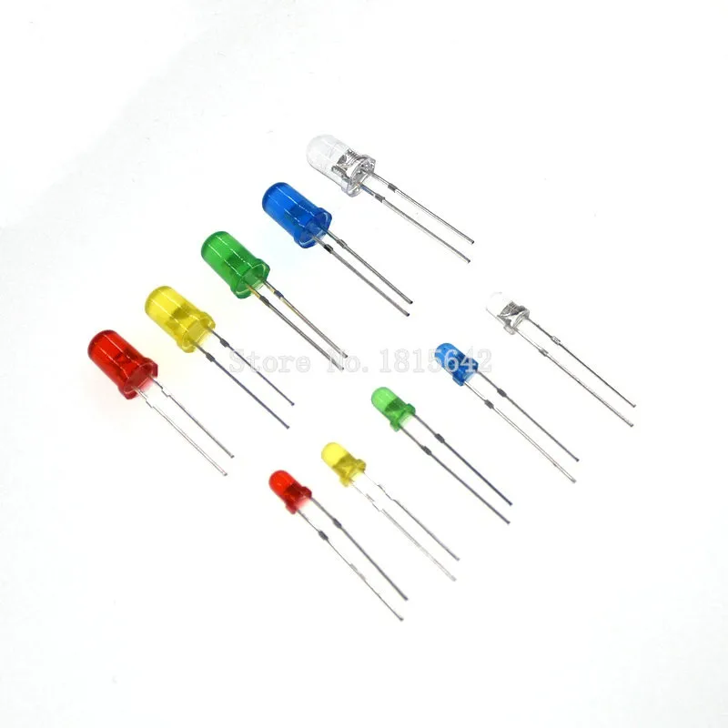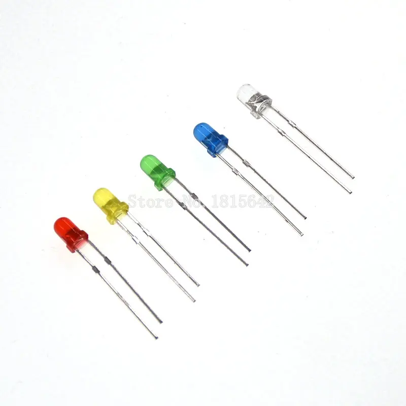 100 шт., светодиодные Диоды 3 мм, 5 мм, белыйсинийкрасныйжелтыйзеленыйоранжевый розовый свет, 5 мм, круглые, прозрачные, F3 F5, цветные светодиодные излучающие диоды