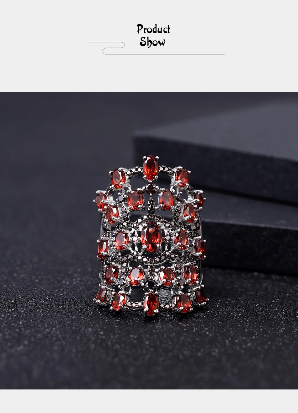 Женское Винтажное кольцо с красным гранатом, ювелирные украшения из...