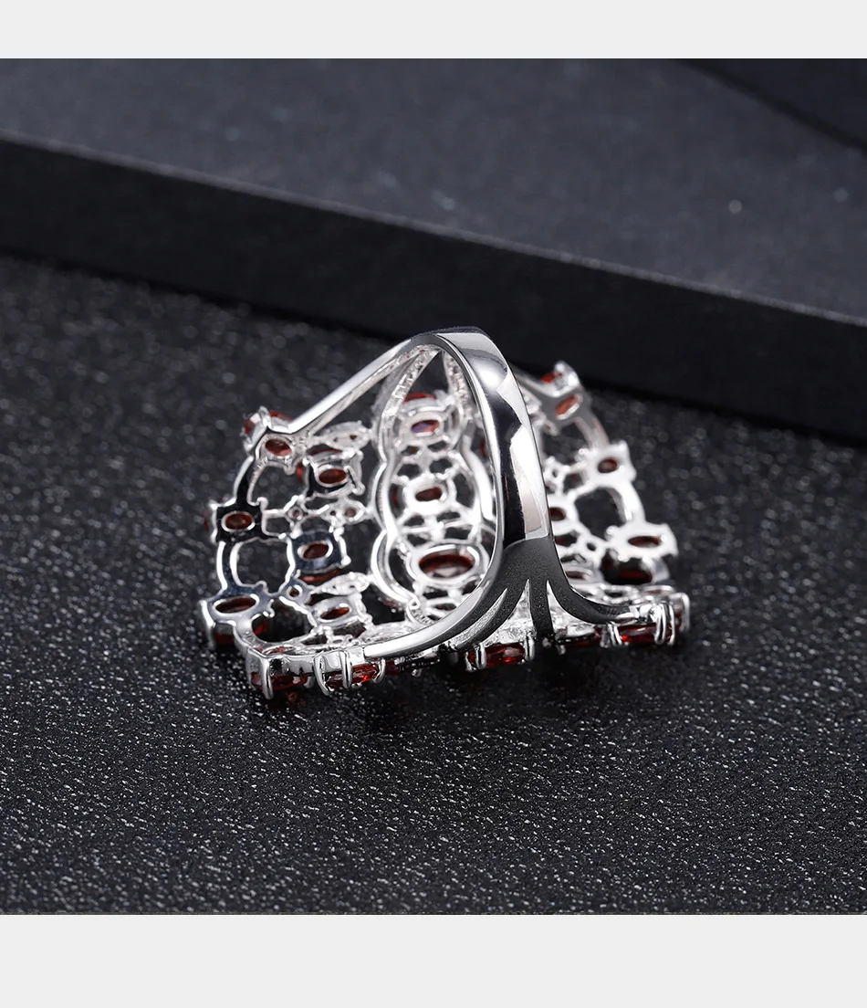 Женское кольцо из серебра 925 пробы с натуральным красным гранатом